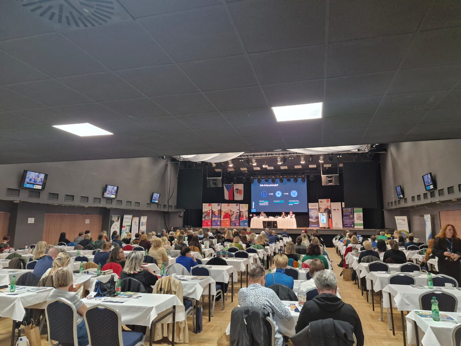 V hlavním sále zároveň probíhala řada odborných prezentací na aktuální témata ze světa sociálních služeb. Právě taková setkání jsou cenná tím, že člověk získává nové informace a pohledy, které může následně využít v praxi při poradenství klientům i spolupráci se zařízeními.