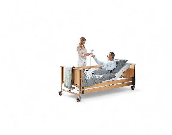 Zánovní elektrické polohovací lůžko Burmeier Dali IV nabízí komfortní polohování všech částí, tichý chod, elegantní dřevěný design a spolehlivost prověřenou v praxi – ideální pro domácí péči.