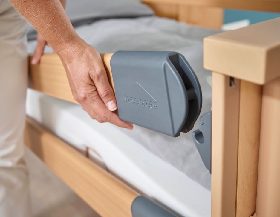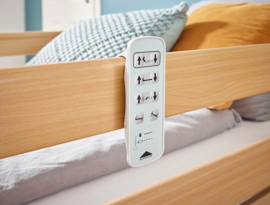 Zánovní elektrické polohovací lůžko Burmeier Dali IV od renomovaného německého výrobce kombinuje vysoký komfort, bezpečnost a estetický design vhodný i pro domácí prostředí.