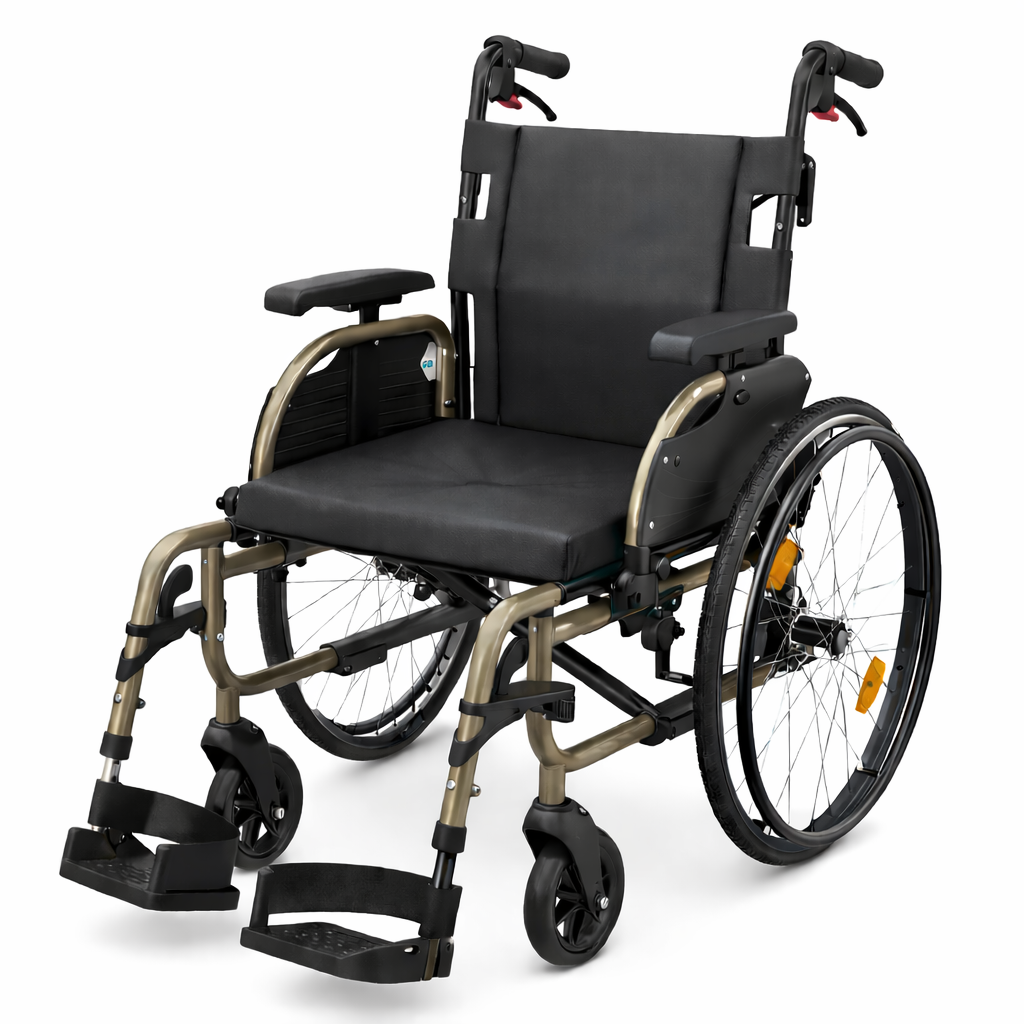 Nosnost do 140 kg, šíře sedu 50 cm váha pouhých 14,4 kg a s brzdami pro obsluhu. Pokud hledáte široký a bezpečný vozík s vyšší nosností a přitom lehký, tak jste ho právě našli!