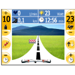 Motomed Thera Vital s velkým displejem nabízí působivější grafiku. Úvodní obrazovka zobrazuje tlačítko start / stop / pauza uzamčení tlačítek, deaktivace zapnutí a vypnutí. Přepínání cvičení mezi horní a dolní částí těla, spastik - funkci proti křečím, různé režimy cvičení, tepovou frekvenci. Při aktivním cvičení zobrazuje Váš výkon, hlásí informace o ukončení cvičení a asistuje při nastupování / vystupování z motomedu. Sloupce symetrie Vám procentuálně vyhodnotí v jaké kondici je konkrétní končetina.